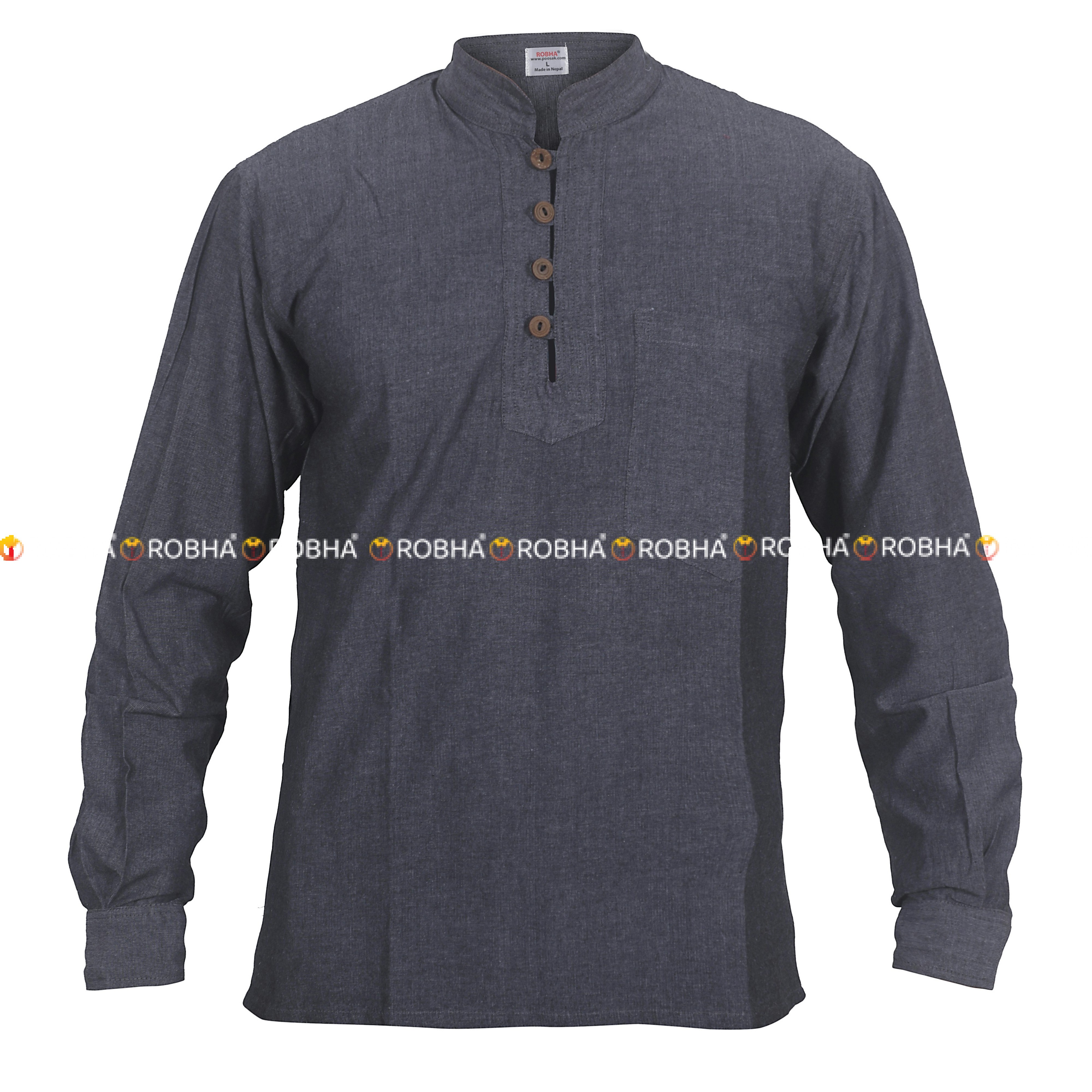 This full sleeved shirt is made from 100% pure Nepali cotton.It is light weighted with great style which is very comfortable to wear. Hippie Full Sleeved Grandad Shirt is suitable during summer .This Stoned washed Shirt can also be worn as a causal wear daily. It has got four buttons on the top and one pocket on the left.